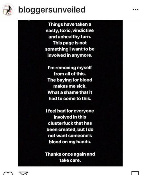 The anonymous account user, who - it is being speculated online - may be a person who trolled popular accounts for a number of years, posted a goodbye message on Wednesday morning. In the message Bloggers Unveiled thanked their audience and revealed they did not want to be involved in the account any more as things had turned "nasty, toxic, vindictive and unhealthy".